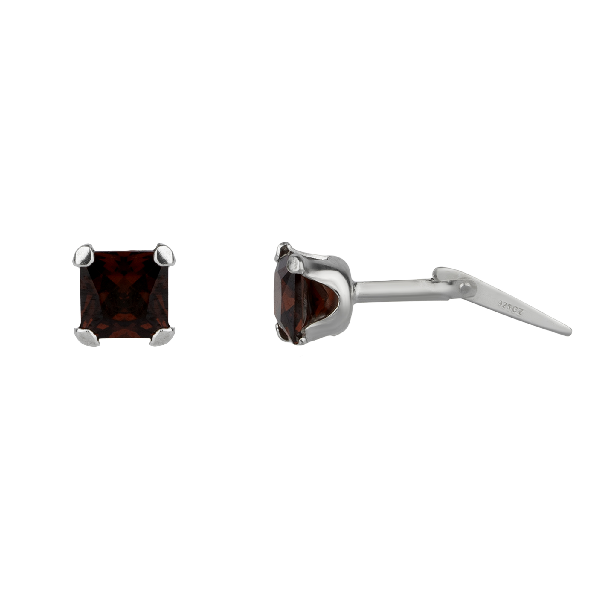 Sterling Silver Andralok Dark Red Cubic Zirconia Square Stud Earrings