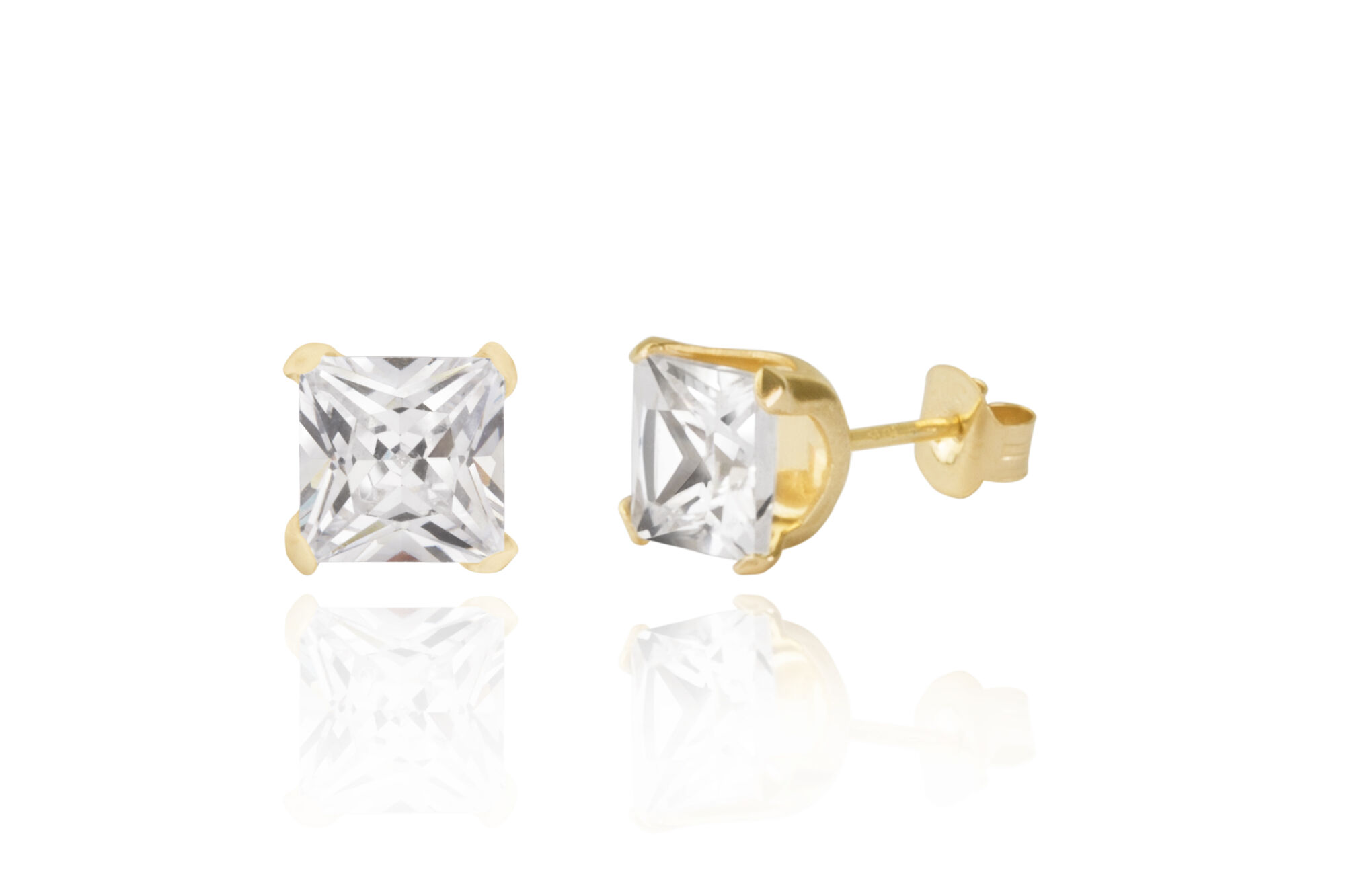 9ct Yellow Gold 6mm White Square Cubic Zirconia Stud Earrings