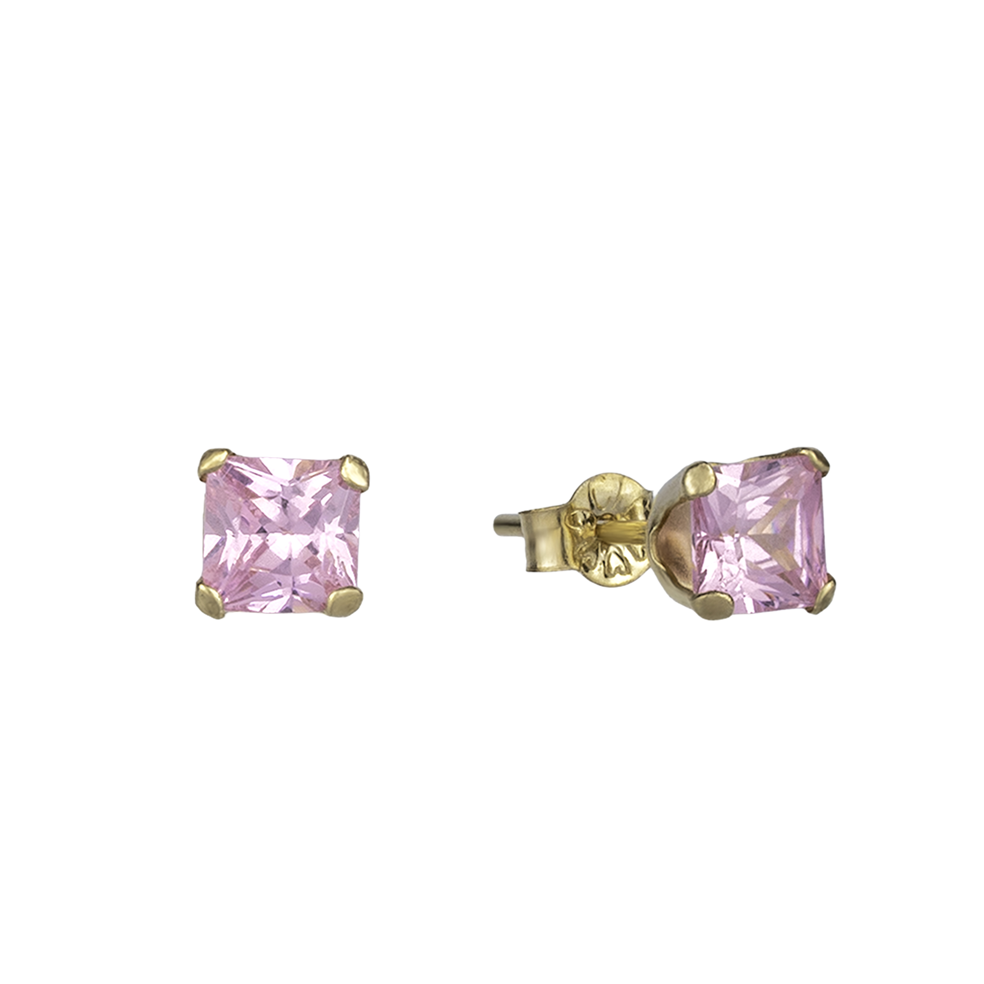 9ct Yellow Gold 4mm Pink Square Cubic Zirconia Stud Earrings
